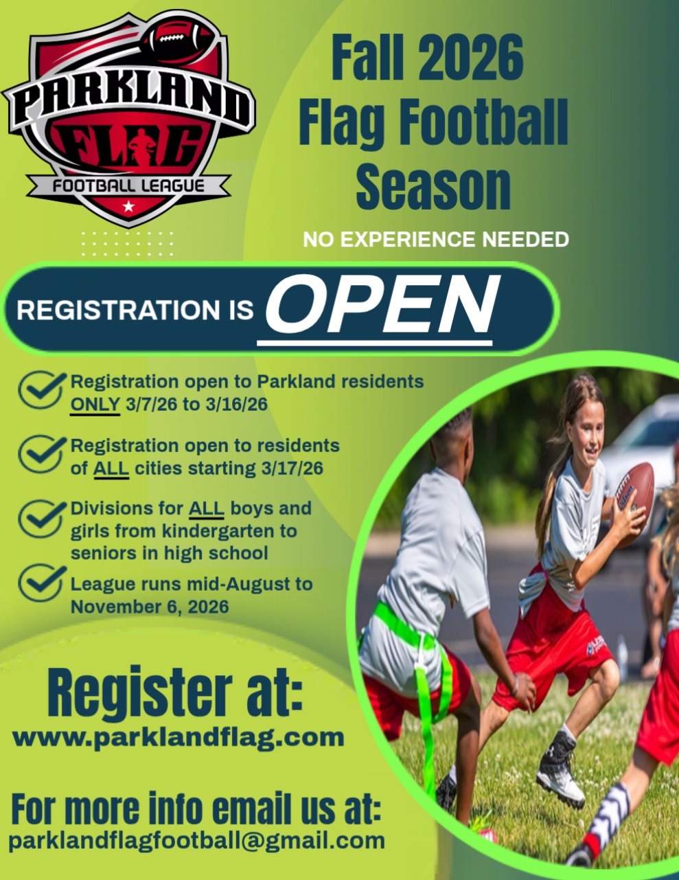 Description:  2026 FALL - Parkland Flag Football League